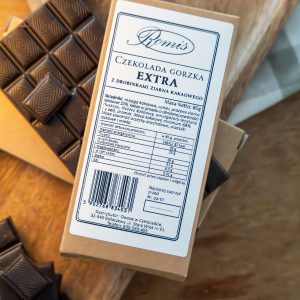 Czekolada ręcznie temperowana przed każdym cyklem produkcyjnym, nie używamy gumy arabskiej, nie pokrywamy naszych produktów utwardzaczami, produkujemy w sposób całkowicie naturalny łącząc prawdziwą czekoladę deserową o zawartości minimum 45% masy kakaowej z owocami suszonymi, kandyzowanymi.